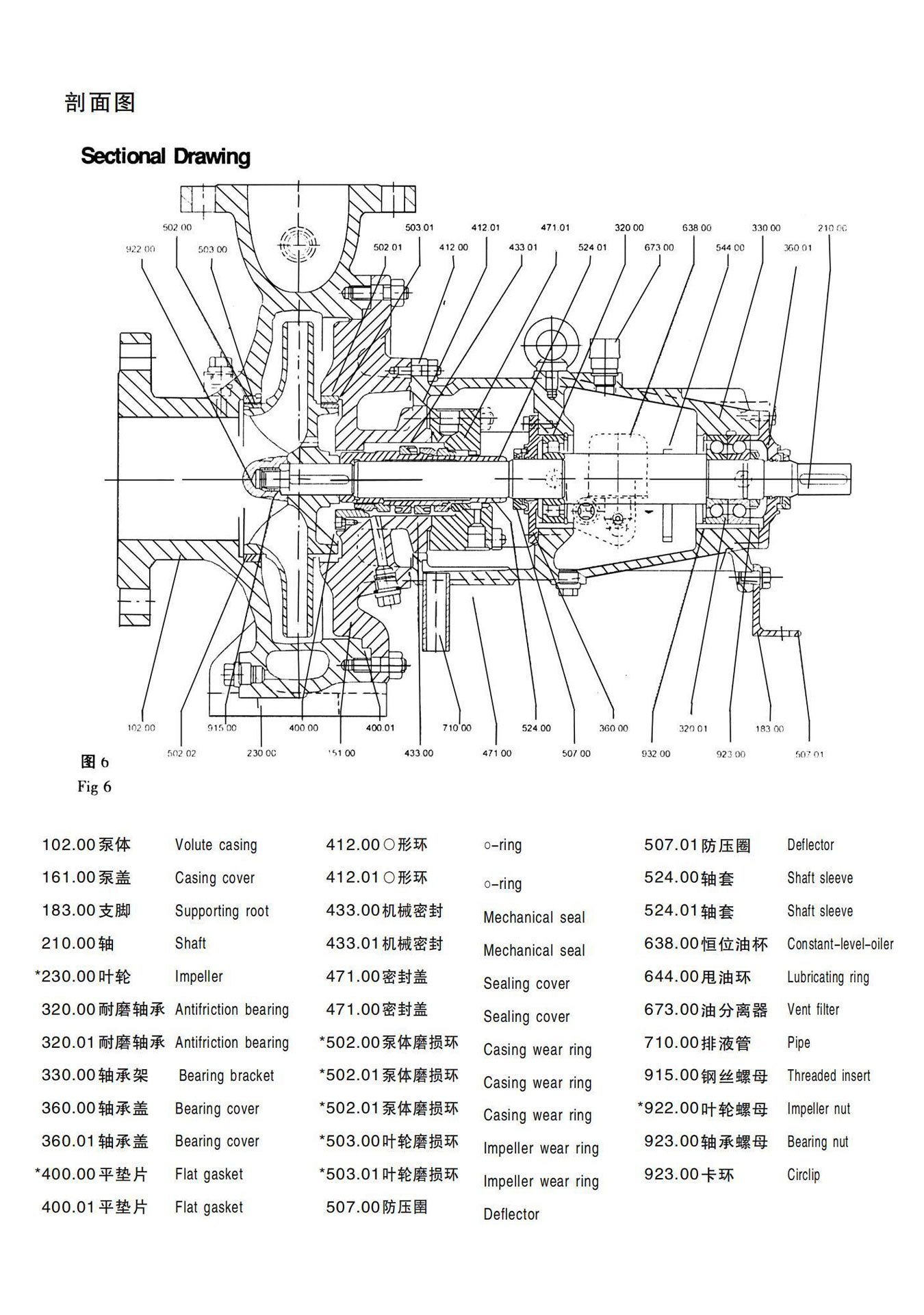 根据使用条件,采用前、后磨损环及平衡孔进行水力平衡。 填料箱具有冷却或加热管接头。 轴封采用填料密封,也可以采用单端面或双端面机械密封。并配有冷却冲洗或密封系统。